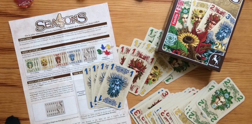 Berlin, Deutschland (Kulturexpresso). Das japanischen Team Saien entwickelte für die Spielewelt die Spiele Element und Onitama, die im Friedberger Verlag Pegasus erschienen. Das dritte Spiel vom Team Saien bei Pegasus Spiele trägt den Titel 4 Seasons. Waren es bei Elements noch 16 Karten, mit denen zwei Spieler mehr oder minder vielseitig „rechnen“ konnten, sind es…