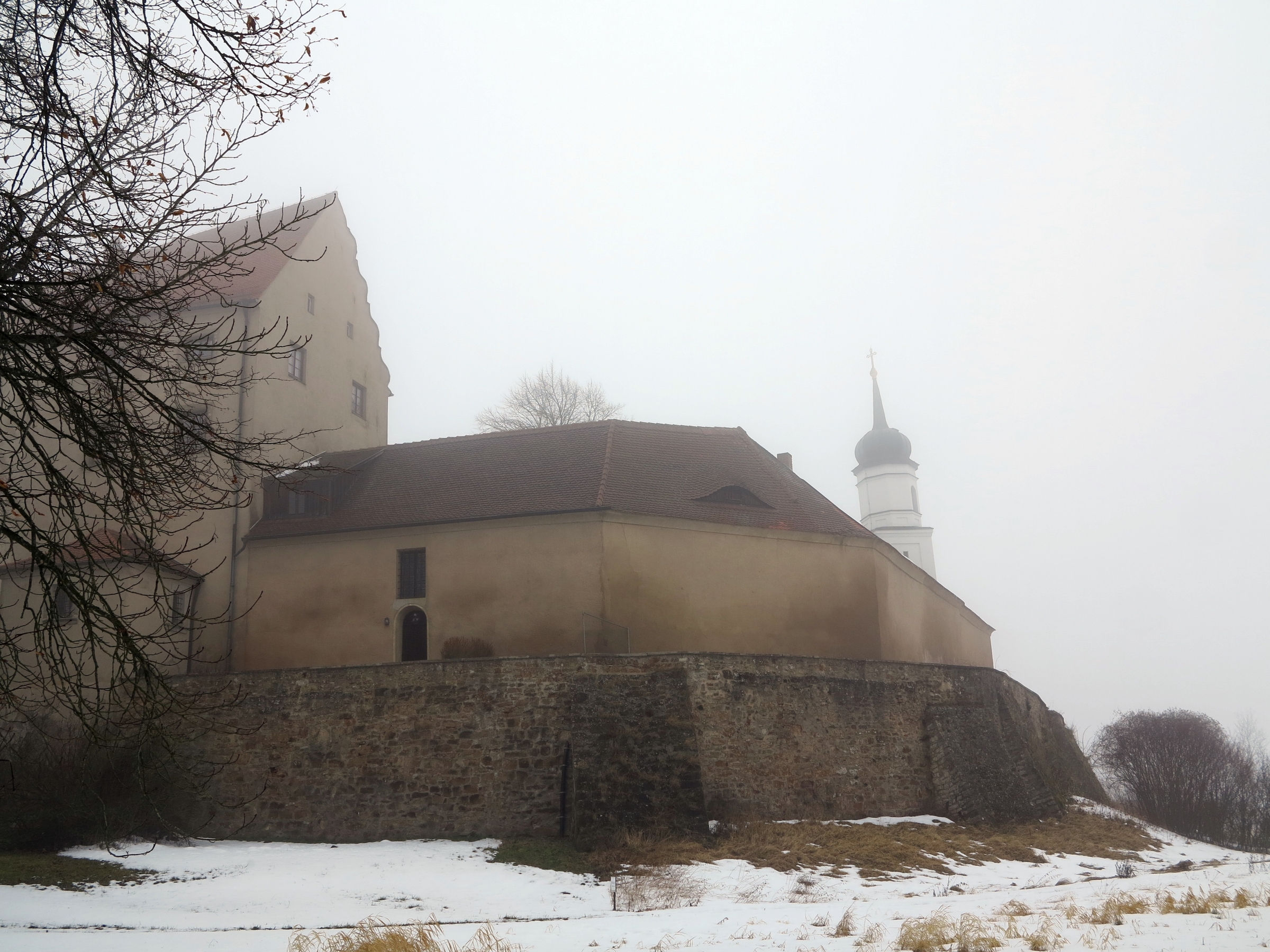 Doch unsere Reise nach Mittelfranken ist noch nicht zu Ende. Etwa 50 Kilometer nach Osten geht es jetzt. Wir machen Halt vor dem auf einem Berg gelegenen, verschneiten, gespenstisch umnebelten Schloss Spielberg südlich von Gunzenhausen. Der Baubestand geht auf das 12. Jahrhundert zurück. Hier ist das Werk des 2008 verstorbenen Bildhauers und Maler Ernst Steinacker präsentiert – eine Art Gesamtkunstwerk, in dem sich Moderne Kunst und der überaus geschichtsträchtige Ort auf spannende Weise verbinden.