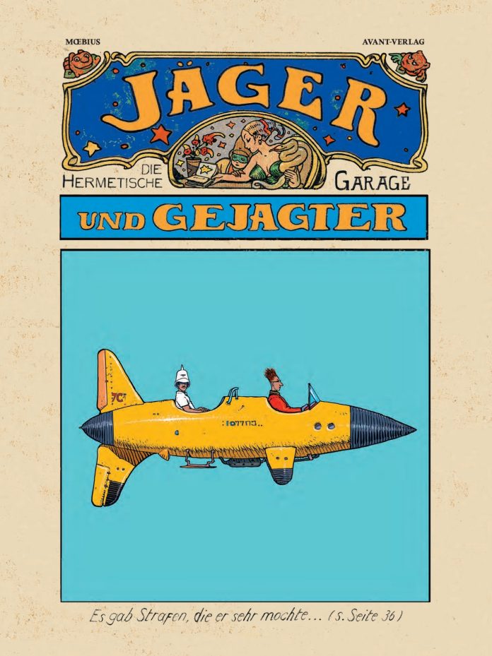 Moebius (Autor/Zeichner), Die hermetische Garage – Jäger und Gejagter, 64 Seiten, schwarzweiß, Sprache: Deutsch, Übersetzung aus dem Französischen: Lilian Pithan, Bindung: fester Einband mit mit Spotlack, Format: 24 x 32 cm, Verlag: avant-verlag GmbH (Eigenschreibweise), Berlin, 1. Auflage 2026,, ISBN: 978-3-96445-157-6, Preis: 30 EUR (Deutschland)