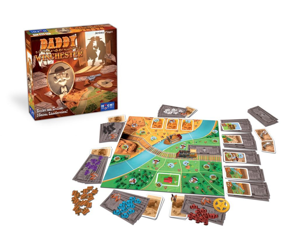 Berlin, Deutschland (Kulturexpresso). Aus dem Hause der Hutter Trade GmbH & Co. KG mit Sitz in Günzburg kommt dieses Frühjahr ein Spiel, bei dem die Colts rauchen und vielleicht auch die Gehirne, denn es geht beim Spiel „Daddy Winchester“ vom vollbärtigen Jérémy Pinget ums Dollar, Minen, Ländereien. Daddy Winchester, der dem Spiel seinen Namen gab,…