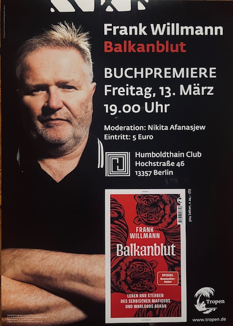 Berlin, BRD (Kulturexpresso). Am Freitag, den 13. März 2026, wird Frank Willmann aus seinem Buch „Balkanblut“ lesen. Die Premiere soll im Humboldthain Club im Berliner Wedding, Hochstraße 46, stattfinden. Die Türen des Clubs sollen bereits um 18 Uhr geöffnet werden.